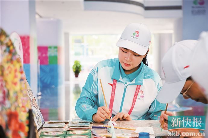 “能够向外地记者和工作人员介绍广东的美食、潮玩文化,感觉非常有意义。”在工作换班的休息时间,李语涵也会和其他“小海豚”朋友一起体验主新闻中心的非遗项目,让她对广东的潮玩和非遗有了更多了解。