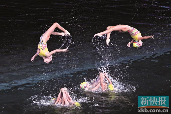 闭幕式水中表演惊艳全场,表演者在水中精准配合,动作整齐划一。从畅游翻腾到叠起人梯,把竞技的力量感和艺术的柔美融合得恰到好处。