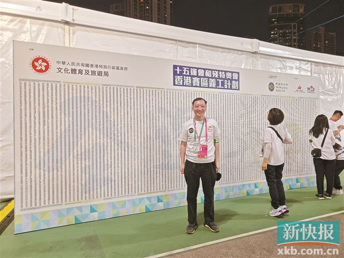 香港赛区为本次十五运会的志愿者准备了一面“义工墙”,所有参与了十五运会和残特奥会香港赛区义工计划的志愿者的名字都会出现在上面。张少威和义工同事们第一次到这面墙前,都纷纷寻找自己的名字,拍照留念。