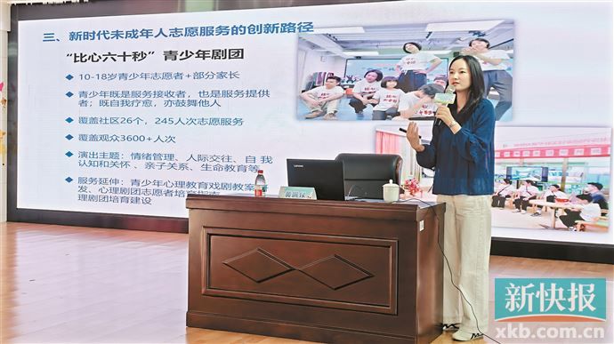 为促进经验共享与协同发展,活动还邀请了3家社会组织代表围绕志愿服务主题进行分享。广州市志愿者协会连续两年开展“益点星光耀童年”社区困境特殊儿童康复志愿服务项目,其代表分享如何打造“公众教育+家庭赋能+专业介入”全链条康复支持体系,为特殊儿童家庭提供支持。广州市白云区天星社会工作服务中心代表重点介绍农村困境儿童志愿服务培育项目如何培育本土化志愿服务力量,为农村困境儿童开展学业辅导、心理疏导、文化传承、亲子共融、科技教育等系列服务。长期深耕志愿服务领域的广州市天河区善爱行动志愿工作促进中心通过分析总结传统未成年人志愿服务模式,提出新的服务理念,并结合“志愿+文化”“志愿+体育”等青少年活动实践,分享多元化的志愿服务创新方式。