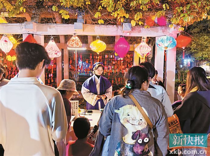 据清代《波罗外纪》记载,每年南海神庙波罗诞庙会期间“楼船花艇小舟大舸,连泊十余里……灯火通宵,登舻而望,真天宫海市不过是矣”。南海神庙的“复现·天宫海市”主题夜游项目,让这段历史从展厅走入历史空间,在夜幕下被再度点亮。项目以文献为基,融合剧本游、展演、灯光等形式,再现古时盛景。游客不仅可在“天宫市集”欣赏主题灯光与非遗摊位,还可化身“商人”完成古代贸易。这些沉浸式体验与展览中的互动项目相映成趣,共同展现海丝文化的多元魅力与时代活力。