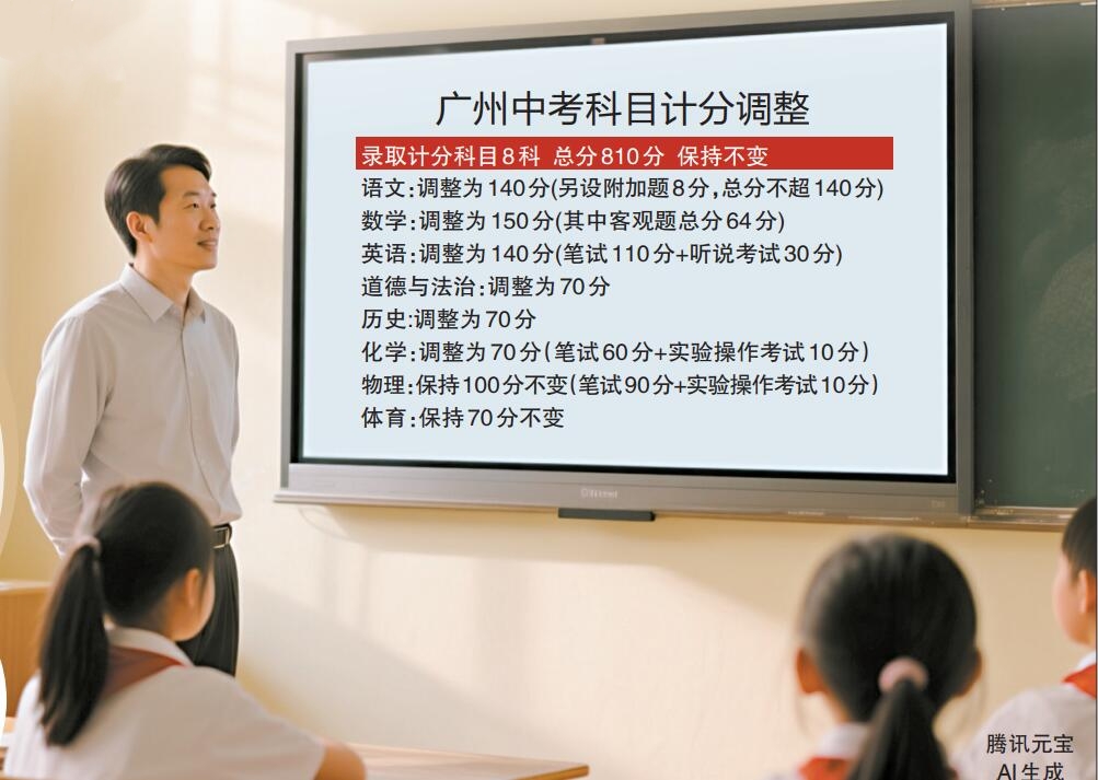 广州市教育局表示,与现行方案对比,《方案》保持稳定的内容有:录取计分科目8科、总分810分保持不变;录取计分科目笔试日期保持与广东省统一命题中考日期相同;各科考试时长均保持不变;继续试行自主命题保持不变;各科题型结构和题型分值配比与现行方案基本保持稳定;各科试卷容量、试题难度保持稳定性和延续性。