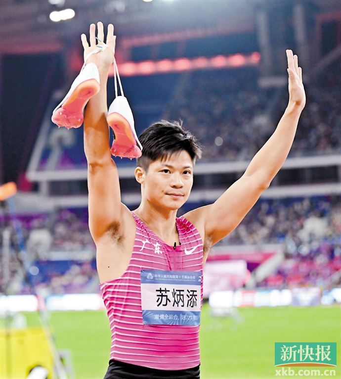 2015年,苏炳添在钻石联赛美国尤金站中跑出9秒99,成为首位突破10秒大关的中国人。2018年,苏炳添在世界挑战赛马德里站百米决赛中跑出9秒91,追平亚洲纪录。2021年举行的东京奥运会上,苏炳添在半决赛上跑出9秒83,打破亚洲纪录。今年11月20日,苏炳添在十五运会的男子4×100米接力决赛中,跑完了自己运动员生涯的最后100米,他和广东队的队友获得第四名。