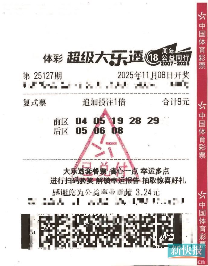 新快报讯 记者陆妍思 通讯员佛山体彩报道 超级大乐透第25127期开奖中,佛山顺德区北滘镇三洪奇市场1号铺4422022280体彩实体店售出的一张彩票中得1注976万多元追加投注一等奖、2注8.23万多元追加二等奖,总奖金达985万多元元,贡献税收197万多元。