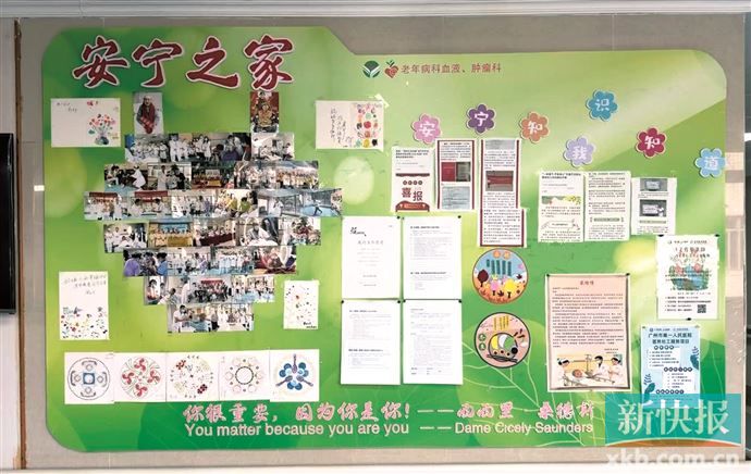 新快报记者近日走访这个安宁疗护病区,只见这里绿植环绕、光线明亮,整个病区充满宁静、温馨的氛围。走廊上设有“安宁之家”宣传栏,不少病人家属在此观看上面的安宁疗护知识。记者了解到,该院探索了多种安宁疗护工作的重要方法,包括回忆疗法、音乐治疗、舞蹈治疗、芳香疗法等。院内很多医护还自发组成了志愿服务队,为接受安宁疗护的病患提供义剪、文艺表演等服务。该院还定期邀请第三方志愿者,来该院开展“爱陪伴”活动,他们像朋友一样与患者谈天说地,帮助他们排遣心中的郁结。