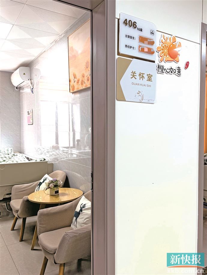 越秀区珠光街社区卫生服务中心位于广州市万福路,在四楼住院部,每个房间分别以水果来命名:“苹苹安安”“诸事大桔”“橙心如意”“柿柿顺利”,这就是该中心于今年整合资源新开辟的安宁疗护病区。