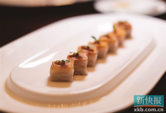 朗豪酒店明阁中餐厅一贯以来的经典招牌冰烧三层肉依旧保持水准,皮脆肉香,面上点缀了一丁黄芥末,恰到好处地提了个味,但又保有着“不争不抢”的姿态。