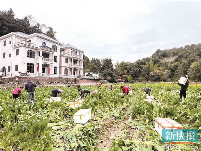 新快报记者了解到,项目采取“基地+家庭农场+农户”的运作模式,由工作队引入公司建设示范基地,提供种苗、技术;村民参与日常管护、采收,按日薪或计件获取报酬。工作队算了一笔账:菜心亩产可达3000斤,按合同收购价每斤2元计算,每亩毛利约3000元,显著提高了土地附加值,加上两季水稻的收益,明显激发了农户参与农业生产的积极性。