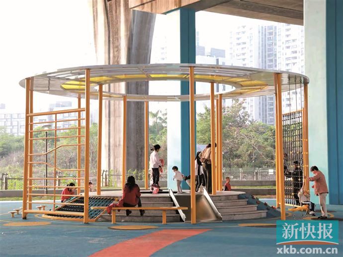 广珠西线高速的桥下空间改造更具特色,其打造的容桂·潮玩PARK运动休闲公园,坐落于佛山市顺德区,临近多个大型住宅区和学校,园内设置篮球场、羽毛球场、乒乓球场、足球场和轮滑运动场等,还配备了沙池、秋千、攀爬网、吊环、钻爬隧道等设施,也有慢行散步道、观景长廊和适老化健身器材,充分满足全年龄段人群的休闲需求。