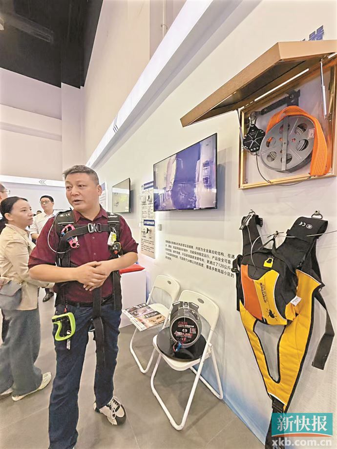 另一款引起记者关注的产品,也是几千元的价格,也同样聚焦在安全。如果高层起火,该如何自救呢?来自深圳的一家企业带来了“飞天蛛逃生背包”,即逃生缓降器。企业工作人员张先生告诉记者,使用它非常简单:企业首先会在家里设置几个锚钩(若锚钩附近不便通行,找坚固设备打结也可);当危险来临时,市民首先像穿衣服一样穿戴好逃生包;再将设备扣在锚点上,随即从门窗前逃走。逃走过程中,一根坚硬的金属线一头连着锚钩,一头连着人;而人也不会像自由落体一样加速下滑,且能保持着每秒1.5米的匀速,宛若有了轻功的“蜘蛛侠”。
