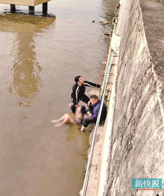 当天15时20分许,广州市公安局荔湾分局南源派出所休班民警钟鸣在荔湾区增槎路某小区对出江面附近休闲时,突然发现不远处一名女子翻越江边护栏,径直坠入江中。“不好,有人跳江!”钟鸣几乎是出于本能地迅速跑向该女子。