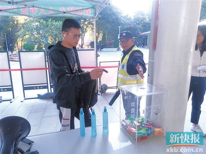 白云山风景名胜区:门岗设安检机、金属探测仪检查,严控火源