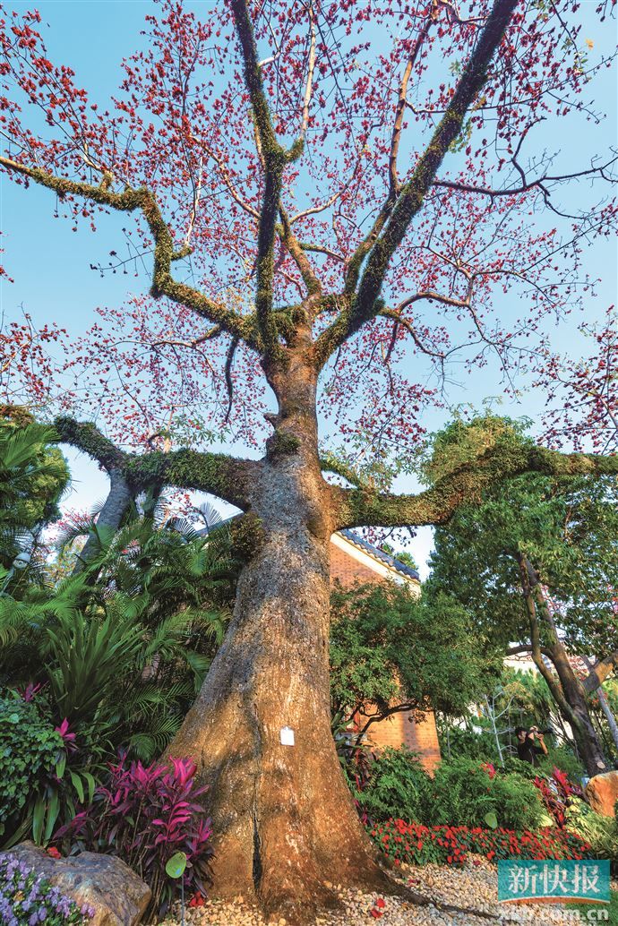新快报讯 记者王彤 通讯员刘慧鹏报道 1月28日,广州中山纪念堂年逾357岁的“木棉王”惊喜绽放,不仅比往年提前近一周迎来初开,更罕见地同日绽放两朵红花,为羊城送上春日祝福。