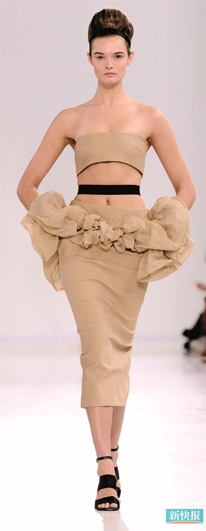 廓形是古典戏剧风格的灵魂载体,2026春夏的设计通过强烈线条对比,演绎出维多利亚时代的戏剧张力。紧身胸衣回归成为经过改良的塑形单品,以柔软的弹力面料替代硬挺衬骨,保留胸腰线条勾勒功能的同时,赋予身体足够的舒展空间。裙撑的体量在这一季以多种手法扩张,让廓形变化更富层次,行走间的线条流动如戏剧舞台上的幕布开合,每一步都自带叙事感。