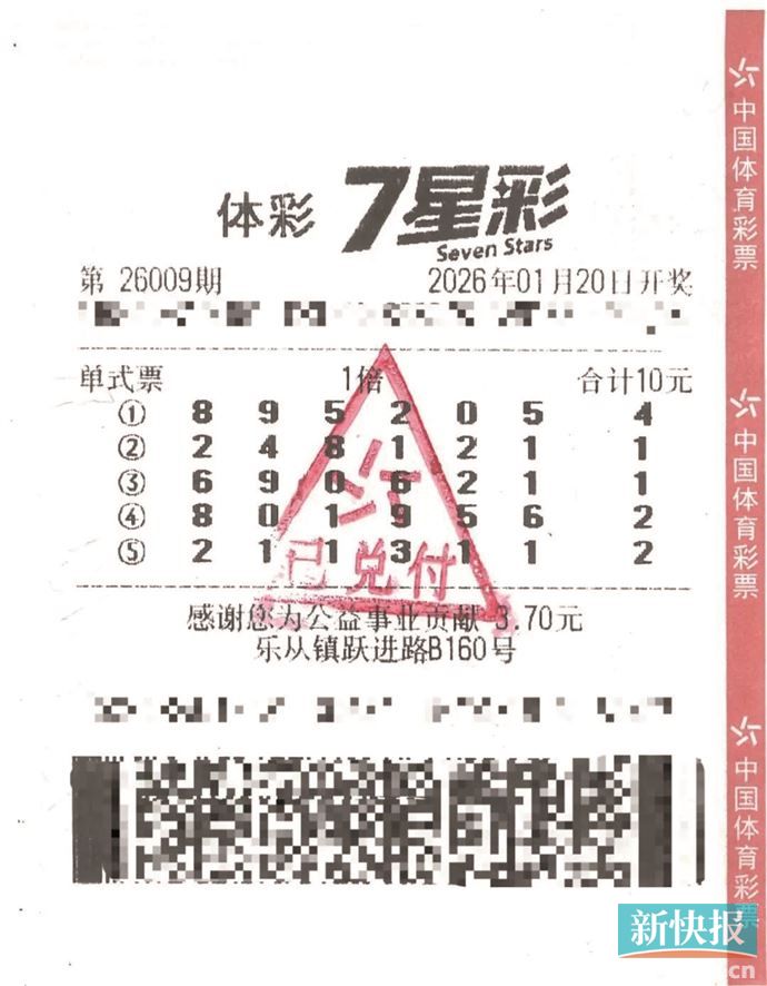 1月20日,体彩7星彩第26009期开奖,开奖号码“8、0、1、9、5、6+2”,全国仅中出2注头奖,单注奖金500万元,其中1注花落佛山。近日,70岁中奖幸运儿冯大爷(化名)现身办理领奖手续,单票贡献税收100万元。