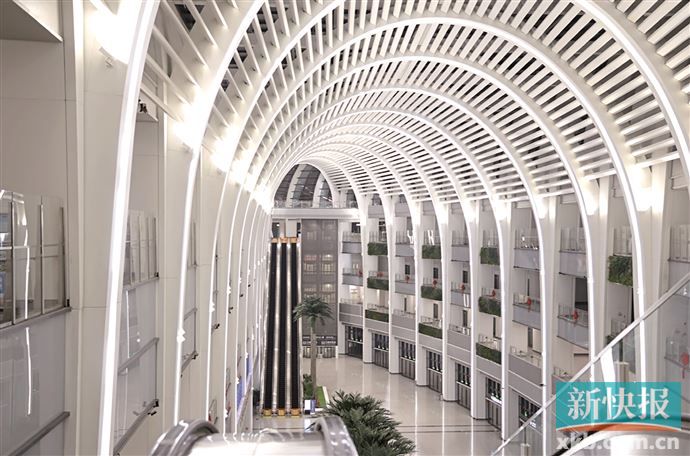 凌晨2时30分许,国铁广州局湖南铁路联创技术发展有限公司广州白云分公司白云站区经理胡卓成来到光谷。此时,一圈圈柔和的灯光洒下,照亮整个空间。视线的上方是一排垂直高度22米的扶手电梯,与地面成30度夹角,向上延伸。