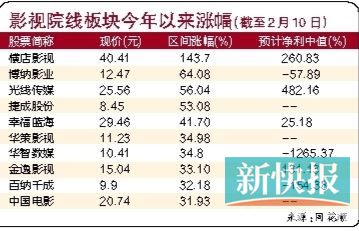 反映到二级市场,今年以来影视板块持续走强,横店影视年内涨幅已翻倍,9个交易日斩获7个涨停,成为春节档核心龙头;上海电影、中国电影、博纳影业等年内累计涨幅显著强于大盘,资金对院线与头部制作公司配置热情高涨。