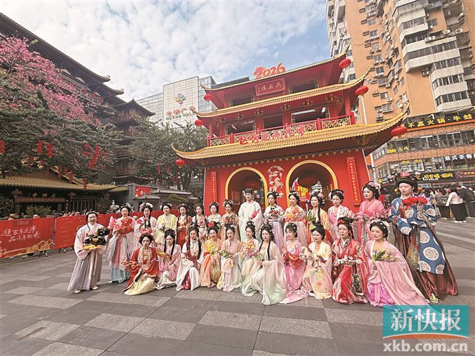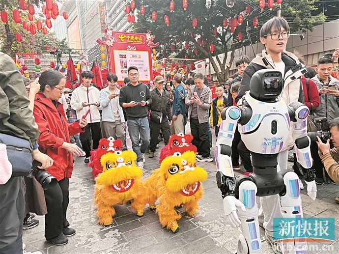 新快报讯 记者梁燕芬报道 2月13日上午,2026年越秀西湖花市在西湖路正式开市。国家级非物质文化遗产醒狮与“科技新星”机器狮同台献艺,智能机器人“秀秀”载歌载舞,这场传统与科技的“双向奔赴”,为百年花市注入了时代活力。