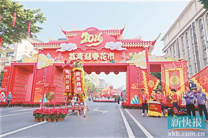 新快报讯 记者谢源源 通讯员荔宣报道 行花街、叹美食,品味地道广府年味。2月14日,2026年荔湾区传统迎春花市启动仪式在荔湾路与中山七路交界处主牌楼下举行。新快报记者了解到,荔湾花市于2月14日(腊月廿七)至17日(正月初一)2时在荔湾路举行。本届花市品类齐全,既有传统应节花卉,亦有岭南文创、各地美食等特色体验。荔湾区诚邀广大市民与八方游客来荔湾、行花街、叹美食,在西关烟火气中共度新春佳节。