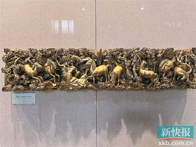 记者了解到,该花楣目前在粤博潮州木雕展厅展出。潮州木雕历史悠久,具有鲜明的地方特色,以饱满繁复、精巧细腻、玲珑剔透、金碧辉煌的艺术风格著称于世。美轮美奂、造型各异的器物品类,生活气息浓郁、民俗意蕴深厚的题材纹饰,惟妙惟肖、纤毫毕现的雕刻工艺,以及豪华富丽、流光溢彩的漆金技法,形象地展示着潮汕人的审美情怀和文化风貌。市民和观众朋友可以前往该展厅一睹八骏神采。
