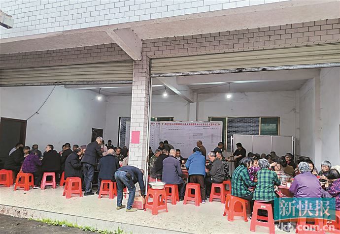 本次敬老宴又称花甲宴,专门宴请莲塘村60岁以上老人,就是想让老人们聚在一起,聊聊天、叙叙旧。村支书彭从艺笑着说:“这几年敬老宴都在村委会大院里办,地势平坦、离老人们的家近,腿脚不便的老人过来很省心。办宴席一来是传承孝道;二来趁着过年,让全村人聚一聚。”