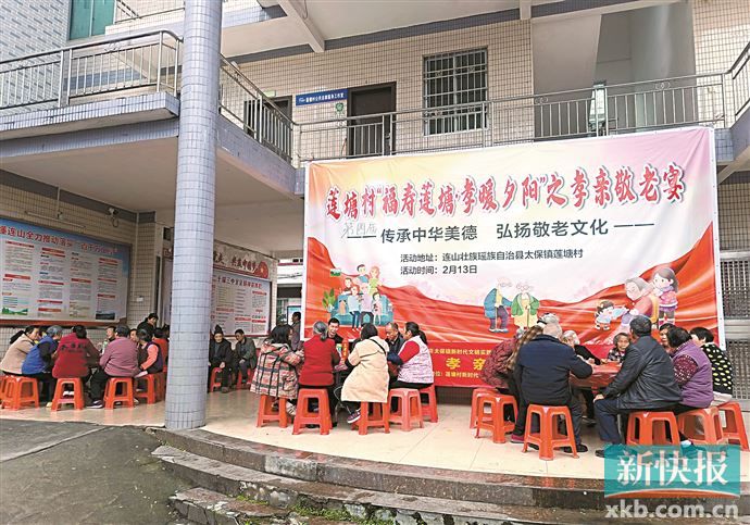 新快报讯 记者曾贵真 通讯员宋子龙报道 为弘扬尊老敬老的传统美德,凝聚乡村邻里温情,2月13日,清远市连山壮族瑶族自治县太保镇莲塘村“福寿莲塘·孝暖夕阳”孝亲敬老宴在村委会大院开席,这是该村连续举办的第三届敬老宴,用孝心守护夕阳红,用温情点亮新春味,让200余名60岁以上的老人在团圆中感受幸福。