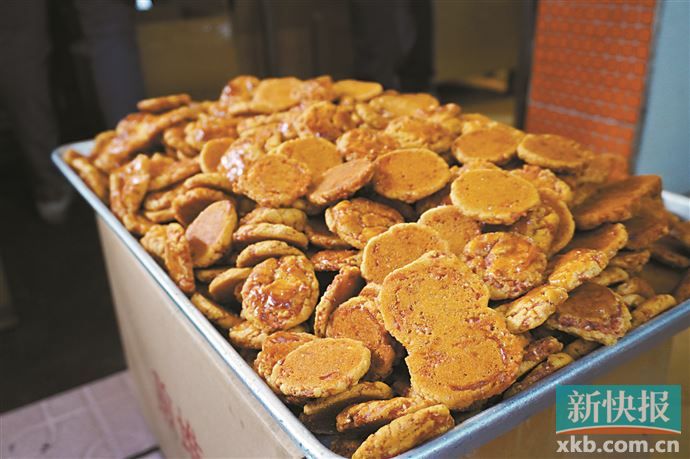 广州名饼鸡仔饼,又名“小凤饼”,以面粉、白糖、猪肥膘肉、榄仁、芝麻仁、瓜子仁、潮州粉、精盐、鸡蛋和花生油为原料烤制而成,香酥松脆,甜中带咸,很有嚼头。如今,不少广府酒家、饼家在传承中不断改良创新,皆有出品。鸡仔饼既是聚会茶点,也是日常零食,可以作为手信赠送亲友。