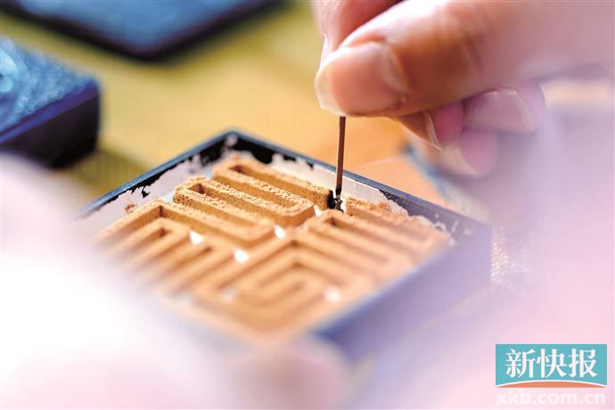 打好的香篆则需手法稳健地垂直缓慢提起,用“凝神静气”形容这一瞬间毫不夸张,稍有手抖香篆纹样即可能受损。