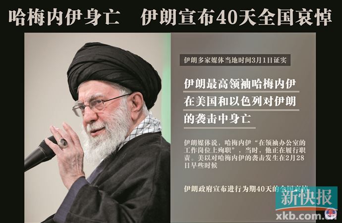 据新华社电 伊朗方面3月1日证实,伊朗最高领袖哈梅内伊在美国和以色列对伊朗的袭击中遇害。美以对哈梅内伊的袭击发生在2月28日早些时候。