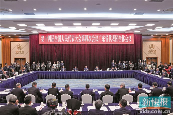 新快报讯 3月6日下午,首都宾馆B座二楼紫云厅,十四届全国人大四次会议广东代表团举行开放团组会议。