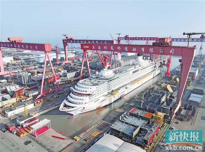 ■我国第二艘国产大型邮轮“爱达·花城号”已完成坞内注水起浮,计划于3月20日在上海出坞。根据计划,总吨位14.19万吨的“爱达·花城号”邮轮将于今年5月底出海试航,年底前正式交付。新华社发