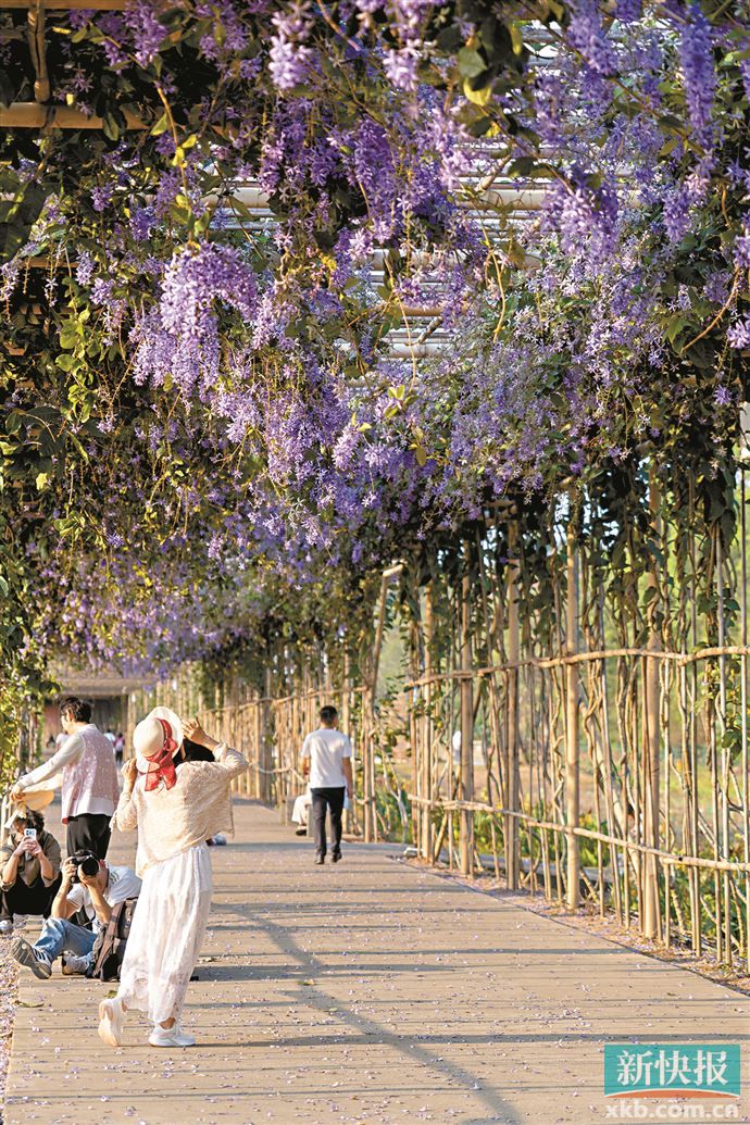 “今年广州没有‘回南天’”竟然还带动了一波赏花潮。“一看到今年广州没有‘回南天’,我赶紧查询机票准备飞回来游玩加祭祖。”年过七旬的詹伯伯祖籍揭阳,童年时在广州长大,大学毕业后一直留在成都工作。今年打算比往年提前一周回广州赏花的他告诉新快报记者,“老伴看见家里亲戚在南沙大稳村拍的蓝花藤,很是向往。我们这次时间充裕,可以深度游南沙,坐坐全国最快的地铁,去万顷沙吃海鲜。听说现在坐城际很方便,我们也打算搭城际去东莞松山湖、肇庆鼎湖山。”