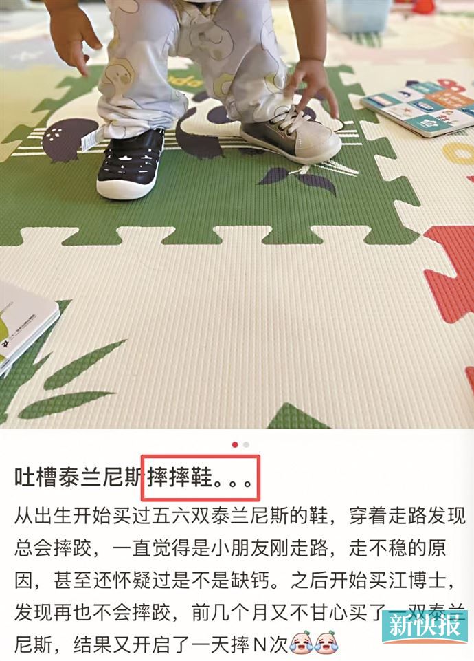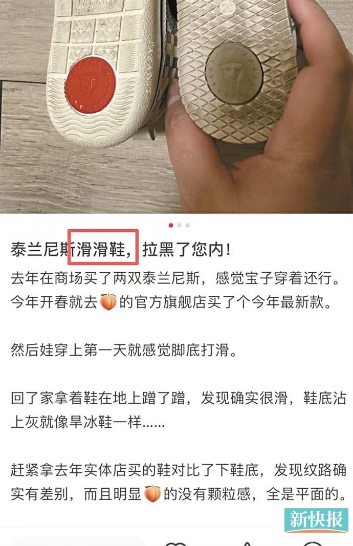 当营销光环褪去,产品自身就会迎来消费者和社会的审视。在社交平台,不少消费者反映,泰兰尼斯童鞋的防滑性能与宣传不符,甚至有网友吐槽为“滑滑鞋”“摔摔鞋”。