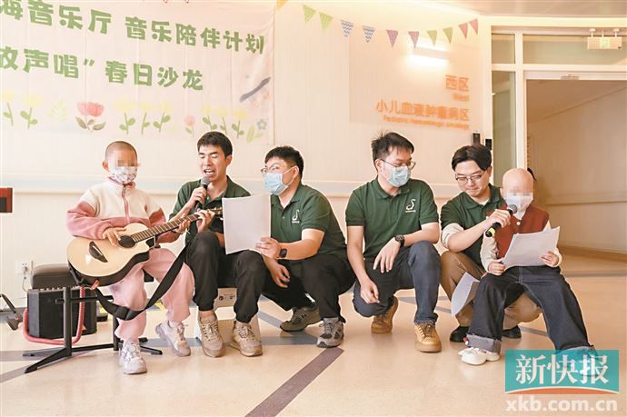 这是由广东公益恤孤助学促进会、星海音乐厅、广州医科大学附属妇女儿童医疗中心日前联合发起音乐陪伴计划“放声唱”春日沙龙出现的情景。这场专为血液肿瘤科患儿、家长及医护人员设计的活动,以歌声为桥,为病房带来了春日的温暖与活力。