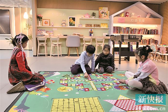 走进服务站,映入眼帘的是孩子们一张张洋溢着快乐的笑脸。站内划分明晰,功能区色彩温馨,益智游戏区配有飞行棋、桌上足球等多种游戏。在“灯塔书屋”阅读区,书架倚墙而立,各类图书整齐陈列。几个孩子坐在桌前,有的独自翻看绘本,有的在家长陪伴下共读。