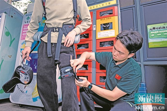 3月26日下午,新快报记者在白云山南门观光车入口处试穿了这款登山“省力神器”。一键启动后,AI智能助力随即开启,行走间仿佛有一股力量在托举,无论上坡还是爬楼梯,均倍感轻松。