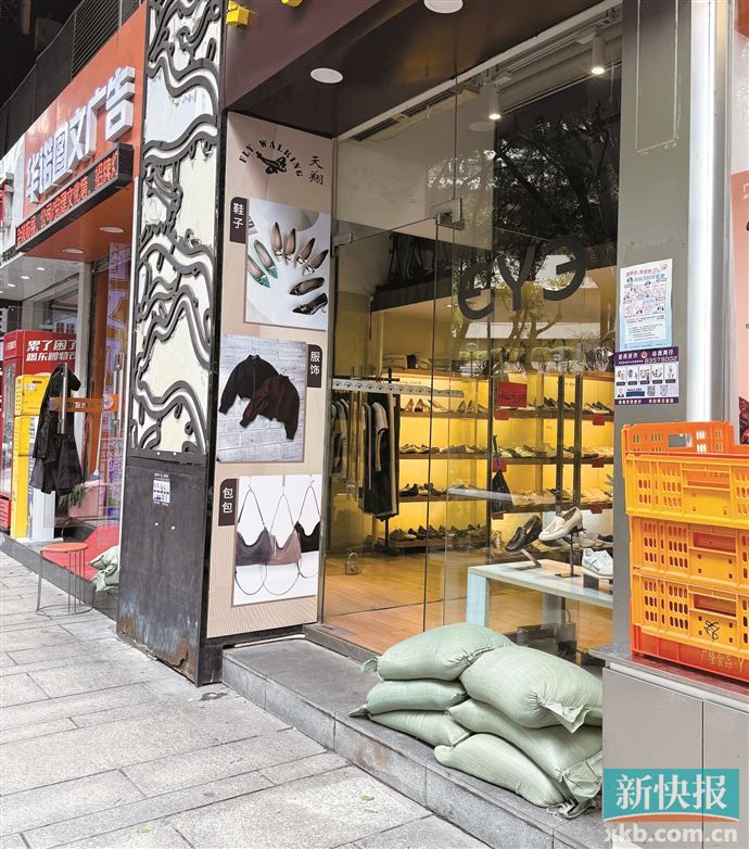 3月30日下午,新快报记者来到越秀区华乐街淘金路与华乐路附近,沿街多家店铺的商户表示,此次水浸情况严重程度远超往年,排水不畅、积水倒灌等因素叠加,导致3月29日下午该排商铺因地势低基本全部被淹。