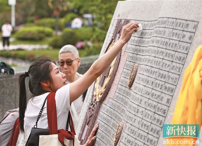 捐献者骆伟光的名字镌刻在2024年1月—2025年12月的纪念碑上,他的女儿骆女士从清远赶来缅怀祭拜,在爸爸名字前双手合十了许久。祭拜完毕后,她分享了爸爸的生前。“爸爸享年77岁,生前是一名普通工人、党员;不过,现在,他在南方医科大学,成为‘大体老师’。”