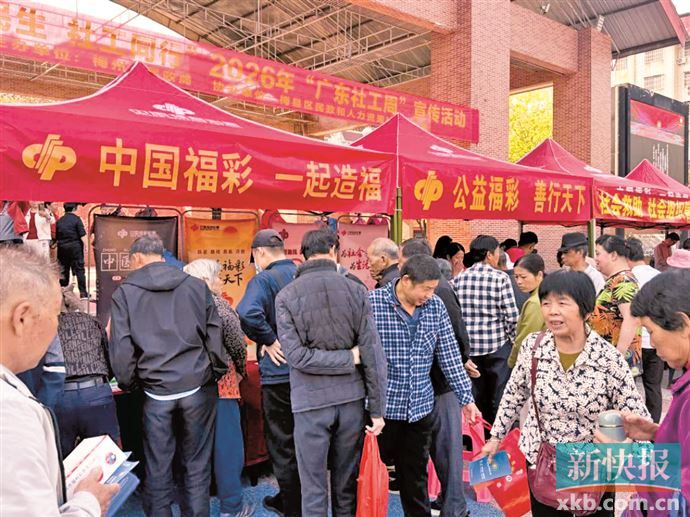 新快报讯 记者陆妍思 通讯员张钲君报道 近日,2026年“广东社工周”宣传活动在梅州市华侨城广场开展。本次活动以“情系民生 社工同行”为主题,梅州福彩积极参与,以“福彩+社工”模式开展公益宣传,将福彩发行宗旨,公益金筹集、分配及使用情况等内容与社工一线服务深度融合,传播“公益、慈善、健康、快乐、创新”的福彩文化。