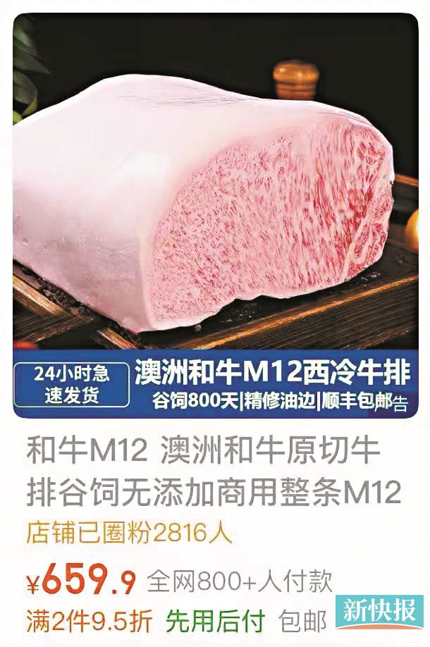最为典型的,就是对日本和牛“A+数字”评级与澳洲牛肉“M+数字”评级体系的混淆与滥用。例如,尽管M9已是澳洲官方AUS MEAT大理石纹评分体系中的牛肉最高等级,但在部分电商平台上,仍频繁出现标注为M10甚至M12的“顶级和牛”,有的链接甚至卖了近千单。