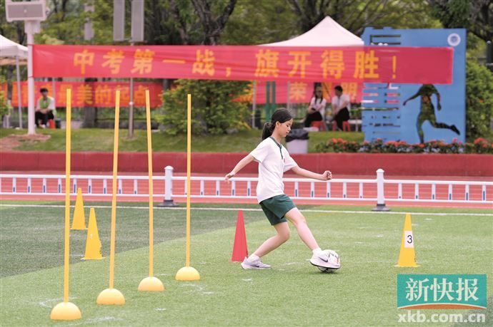 足球项目满分考生吴同学此次考试用时36秒。提及考试实战体验,她表示,不要紧张,就把场地当作在学校考试,放松就能保持状态,出现失误多是因为心态不稳。“要注意在绕杆的时候,一个杆一个杆地过,就会稳定,急躁的状态下球可能会出界。”吴同学说,如果出现风力时,她建议脚后跟可以往外扩,把球揽住,球就不会跟着风走。