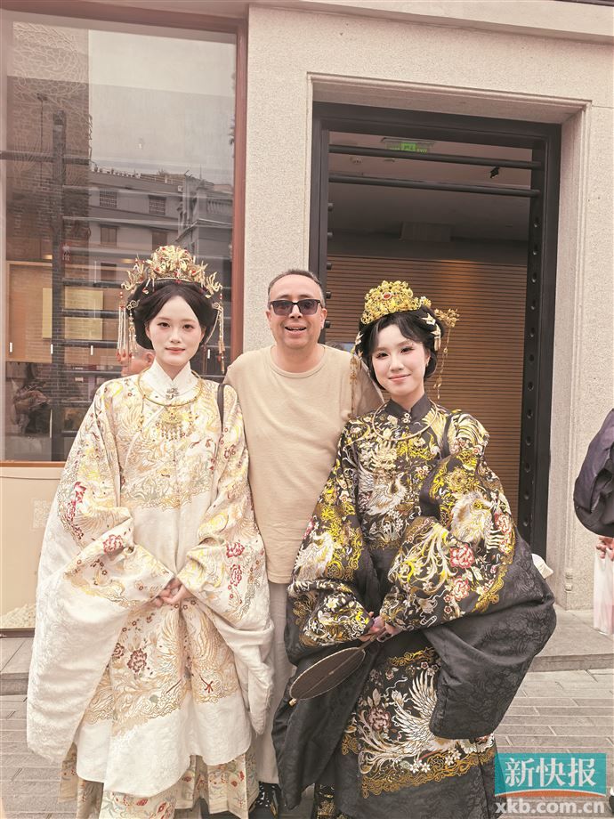 周末的广州气候宜人,永庆坊内人头攒动,处处洋溢着老城区的蓬勃生机。卡雷姆漫步在独具岭南特色的建筑群中,西关大屋、趟栊门、满洲窗依次映入眼帘,让他满眼新奇、赞叹不已,对岭南建筑的古韵雅致更是连连称道。他不时停下脚步主动请求拍照,遇到身着汉服的年轻游客,更是上前热情邀约合影。