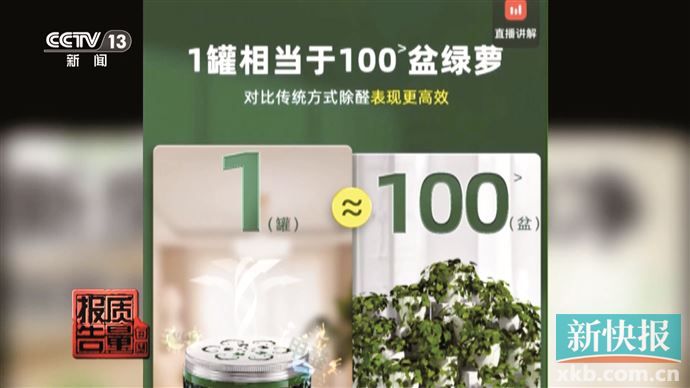 杨小莹说,这么小的字平时根本就看不清楚,仔细看的话,其实是使用了4罐产品放入了一个1.5立方米的环境,最终达到了它产生的99%的除醛率,放大到这么大的情况下,目前还是看不太清楚,这个就存在一个严重的大字吸睛小字免责的嫌疑。