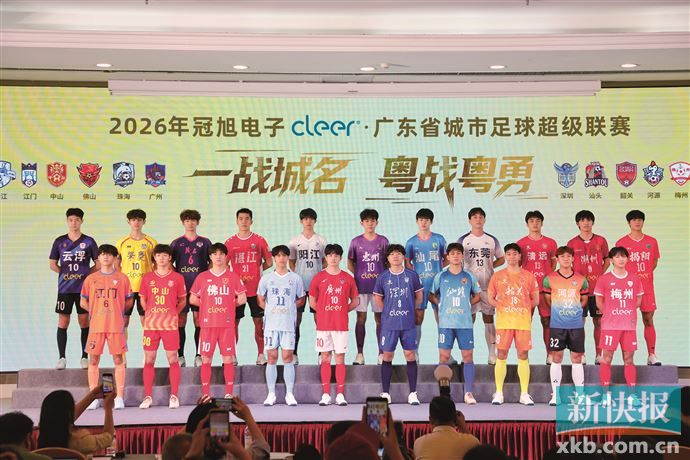4月25日,2026冠旭电子Cleer・广东省城市足球超级联赛(下称“粤超”)揭幕战即将在越秀山打响。昨日,粤超21队球衣正式亮相,各队战袍颜色各异,设计别具一格,搭配上充满地域特色的队徽,展现出了广东各地足球文化的独特魅力。