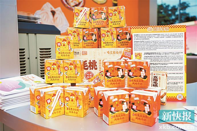 姜葱鸡风味牛奶、五指毛桃牛奶、玫瑰豉油鸡风味牛奶……这些将广府名菜“装进牛奶盒”的创意产品,近期在社交网络迅速走红,如今又来到广交会现场。采购商们举着一瓶瓶“可以喝的姜葱鸡”,脸上写满好奇与惊喜。