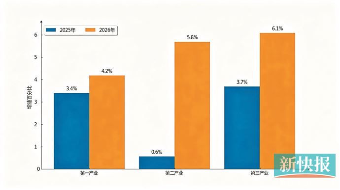 一季度,广州经济呈现整体回升向好态势。第一、二、三产业增加值同比分别增长4.2%、5.8%和6.1%,均高于2025年同期增速(3.4%、0.6%、3.7%)。