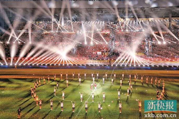 除了全场高唱,开幕式上还有让人暖心的画面。舞台灯光秀回顾了广东足球的昔日辉煌,容志行、欧伟庭、麦超、区楚良和卢琳5位广东足球名宿还在现场举行了交接足球的仪式,以此诠释广东足球同心聚力、共逐荣耀的精神内核。当这5位广东足坛传奇亮相时,现场球迷都立即鼓掌致敬。