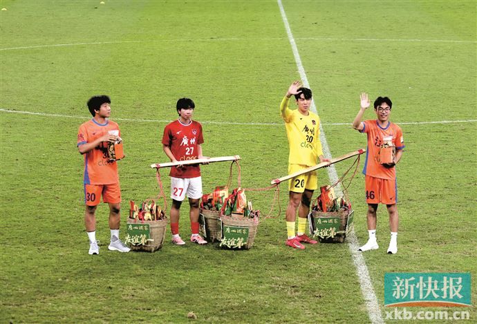 球迷场下融洽,球队在场上也礼尚往来。在比赛中场休息时,广州队和江门队互赠了礼物,广州队送出的礼物是粽子,而江门队的回礼是特产陈皮。
