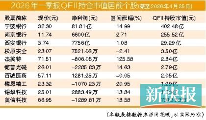 从QFII目前的持仓市值来看,外资较热衷于投资银行股,如宁波银行、南京银行等持仓市值均超200亿元。法国巴黎银行持有南京银行22.43亿股,占流通股比例达18.14%,为第一大流通股股东。此外,外资对紫金矿业的持仓市值达46.26亿元,对天孚通信、中际旭创的持仓市值均超35亿元。值得一提的是,风电设备行业次新股锡华科技前十大流通股东中有七大是外资,包括摩根士丹利、阿布达比投资局和高盛公司等,持仓市值1.23亿元。