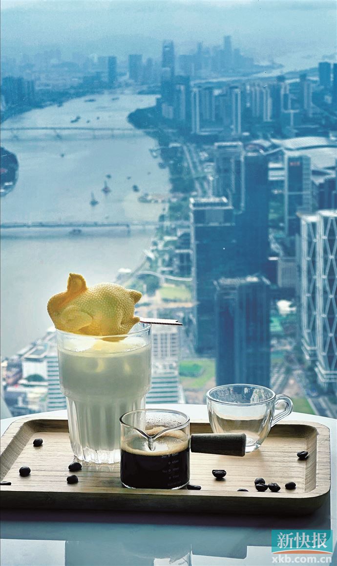 广州塔的“塔畔吧”坐拥无遮挡江景,随手一拍就是塔景与咖啡同框的氛围感大片。顾客方先生表示,自己平时很喜欢来广州塔打卡叹咖、休闲放空。适逢广交会,他也有接待外国宾客的需求。他尝试带外国宾客来喝白切鸡拿铁咖啡,那只精致的黄色白切鸡让外国宾客大呼有趣,纷纷掏出手机拍照。“他们还问我,能不能吃?我让他们大胆试一试。”